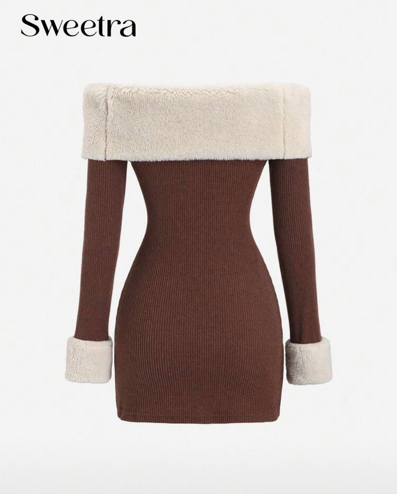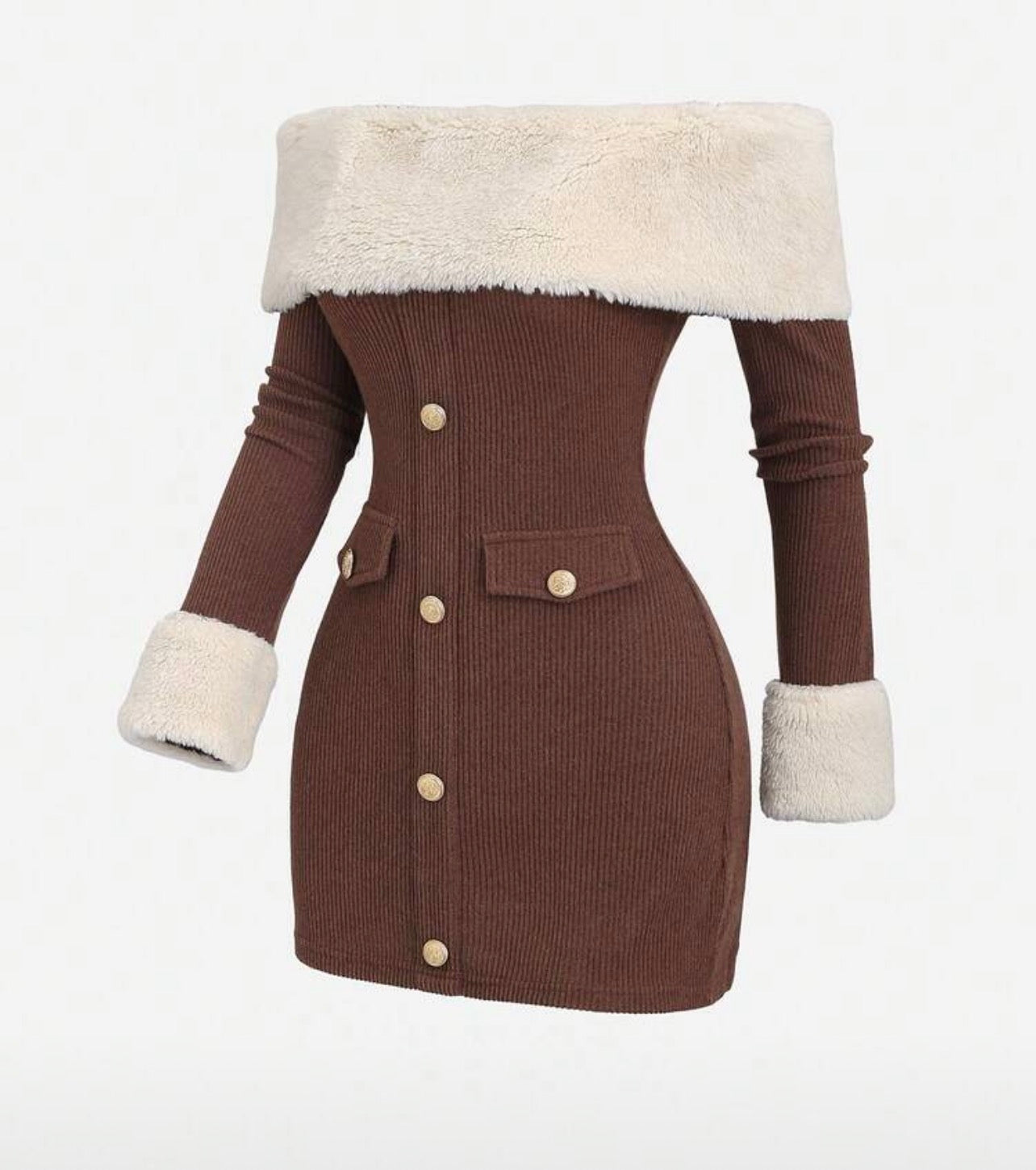 يتميز الفستان بياقة فرو عريضة ناعمة تمنحك مظهرًا جذابًا ولمسة من الفخامة، بالإضافة إلى أساور فرو على الأكمام لتعزيز الدفء والأناقة.