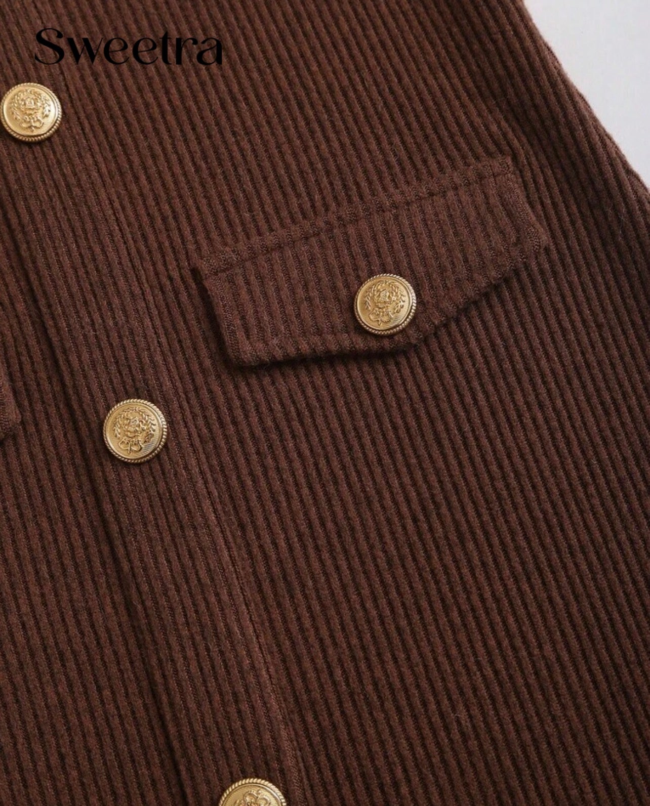 قَصّة الفستان الجسمانية Bodycon تمنحك قَوامًا ممشوقًا، مع أزرار أمامية ذهبية تضيف لمسة فاخرة. مثالي للسهرا