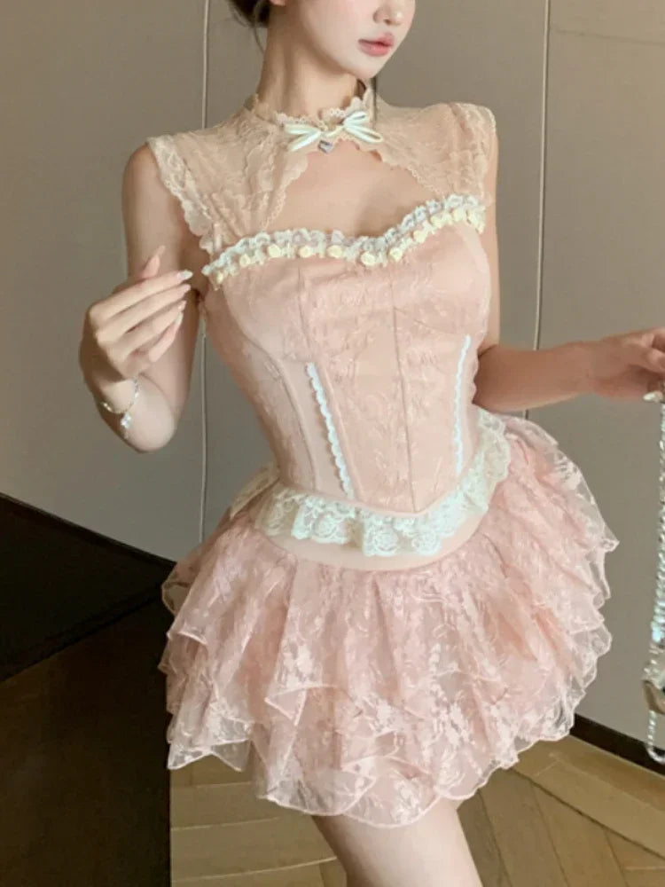 اليابانية 2 قطعة تنورة مجموعات النساء عارضة مساء حزب الملابس خمر لوليتا الدعاوى اللباس الإناث شيك أبلى الحلو