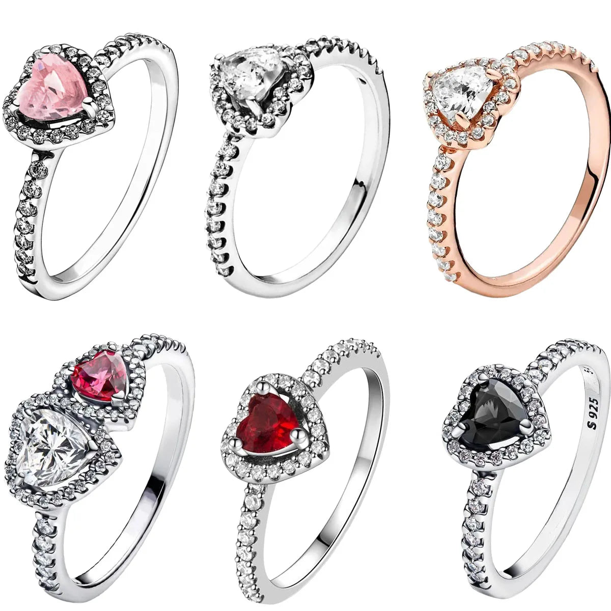 حار بيع الأصلي 925 خاتم الفضة الاسترليني الملونة القلب الزركون 6 7 8 9 حجم للنساء عيد الحب هدية عيد ميلاد DIY المجوهرات